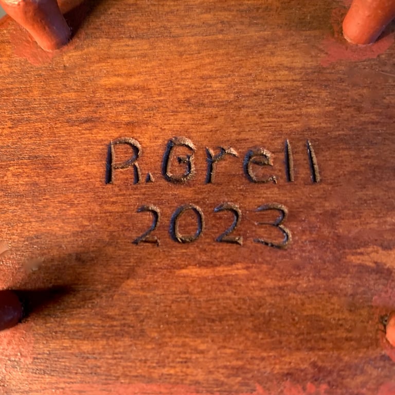 Each miniature chair is handmade by Richard Grell using the same methods and tools used in making his notable full size Windsor chairs and is signed with his hand carved "R. Grell" hallmark signature and year.