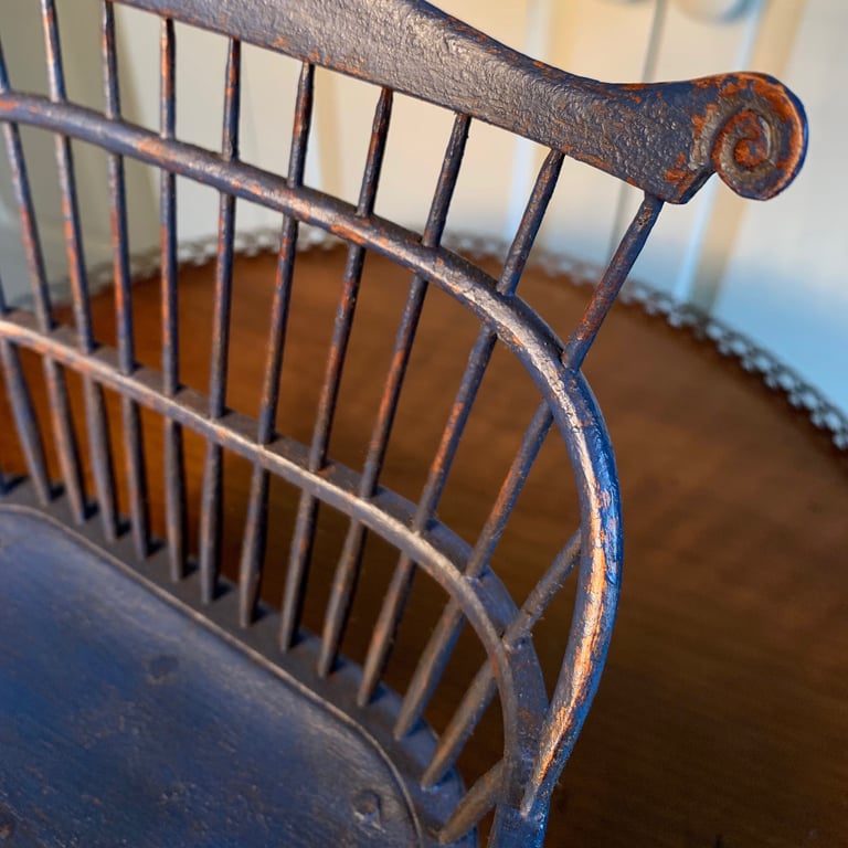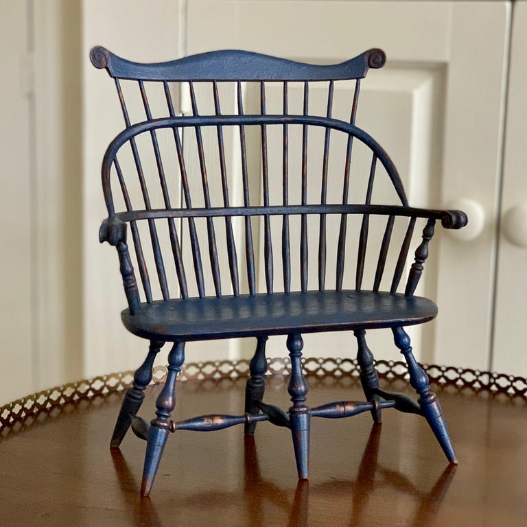 Miniature Comb-back Windsor Settee - Aged Federal Blue Paint