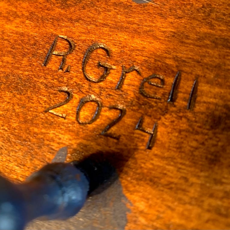 Each miniature chair is handmade by Richard Grell using the same methods and tools used in making his notable full size Windsor chairs and is signed with the hand carved "R. Grell" hallmark signature and year.
