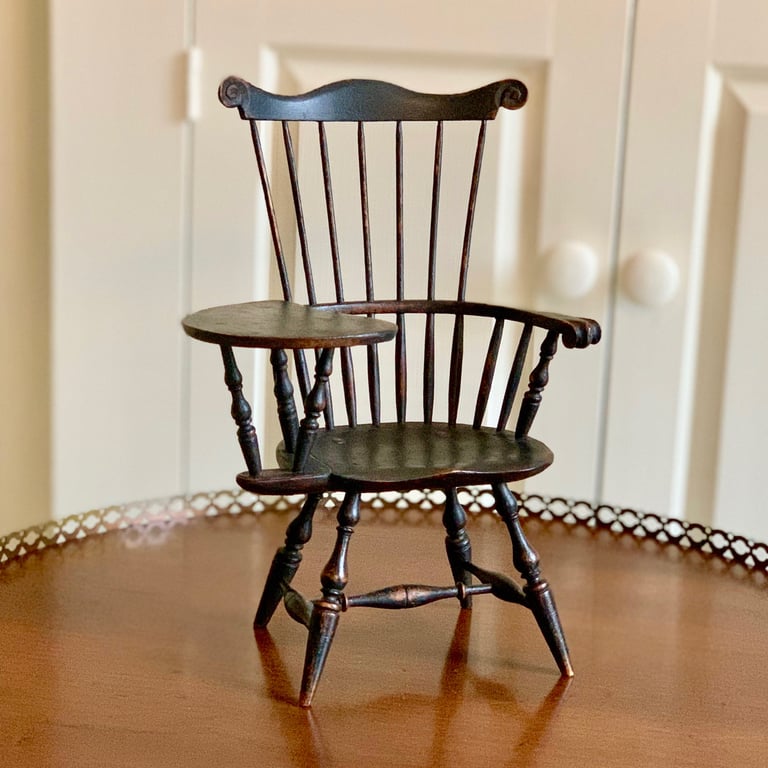 Miniature Comb-back Writing-arm Windsor Chair - Aged Black Paint